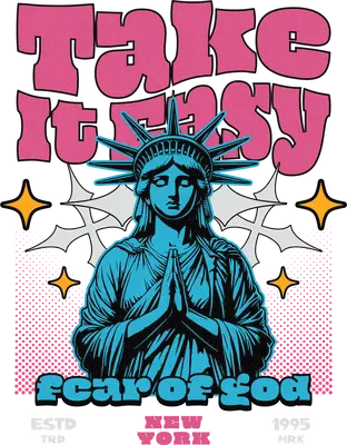 Take It Easy Fear of God Statue of Liberty DTF Transfer | Retro Praying Hands