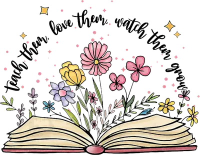 Teach Love Grow Teacher DTF Transfer - Floral Book Design