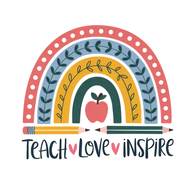 Teach Love Inspire Boho Rainbow Apple DTF Transfer for Teachers