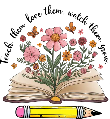 Teacher Appreciation Flowers Book DTF Transfer | Teach Them Love Them Grow Design