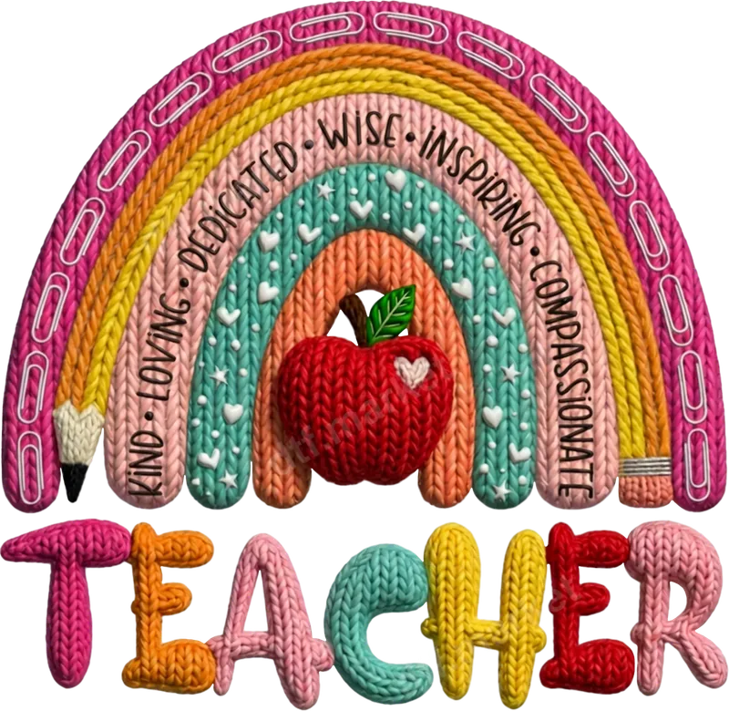 Teacher Appreciation Knitted Rainbow DTF Transfer | Ready to Press