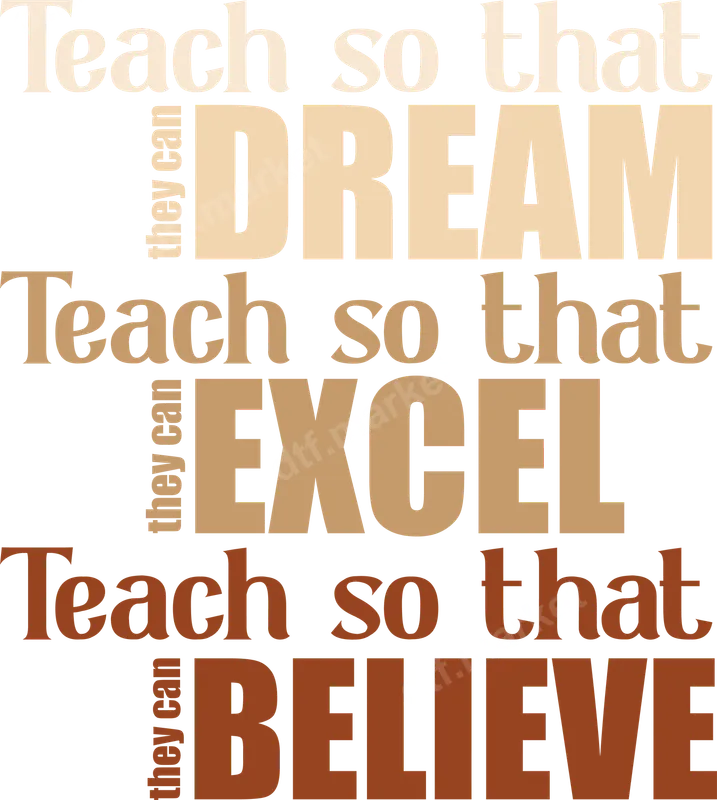 See allThis impactful DTF transfer features the inspiring message "Teach so that they can DREAM, EXCEL, BELIEVE" in elegant, varying shades of beige and brown typography. It's a powerful design celebrating the profound influence of educators. This ready to press transfer is perfect for quickly customizing apparel with a meaningful statement, ideal for anyone honoring the teaching profession. An excellent choice for teachers, educators, mentors, and school staff, this design is perfect for showcasing dedication. Ideal for Teacher Appreciation Week, back-to-school events, graduation gifts, or as a daily reminder of their vital role. It also makes a thoughtful gift for aspiring teachers or educational professionals, allowing them to personalize garments with a significant iron on transfer. Applying this heat press transfer is simple and efficient. It adheres beautifully to cotton, polyester, and blends. For best results, use a heat press at 300-325°F for 15 seconds with medium pressure, then cold peel. A household iron can also be used. There's no weeding required, making customization quick and hassle-free. Experience professional-grade quality with this t-shirt transfer. Our direct to film transfers boast vibrant colors, exceptional durability, and are resistant to cracking and peeling, ensuring your design looks fresh wash after wash. The soft-touch feel integrates seamlessly with the fabric, providing comfortable wear. Each transfer is printed on high-quality DTF film with a strong, reliable adhesive.