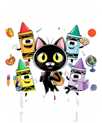 Teacher Life Black Cat & Crayons DTF Transfer | Ready to Press