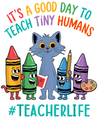 Teacher Life Cat & Crayons DTF Transfer | Good Day to Teach Tiny Humans