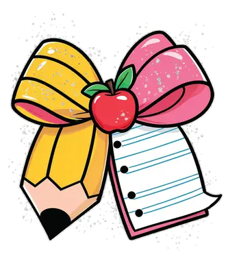 Teacher Pencil Apple Notebook Bow DTF Transfer | Back to School Ready to Press