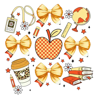 Teacher Vibes DTF Transfer: Apple, Coffee, School Supplies & Bows