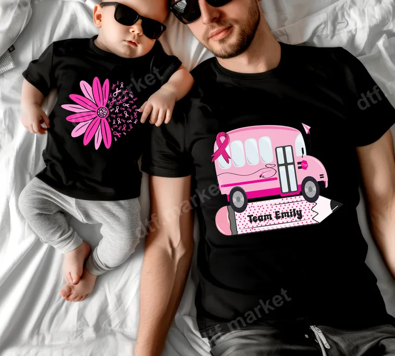 See allThe design features a vibrant pink school bus adorned with a prominent breast cancer awareness ribbon, driving atop a stylish pink-tipped pencil. The phrase "Team Emily" is elegantly inscribed on the pencil, making this a deeply personal and supportive statement. This high-quality DTF transfer is designed to help you proudly display solidarity and love for someone special. It's a ready to press design, perfect for creating custom apparel quickly and easily. This unique design is ideal for anyone looking to support a loved one named Emily, or for general breast cancer awareness events throughout October. It's perfect for family members, friends, teachers, and school communities participating in charity walks, fundraisers, or simply showing daily encouragement. Create thoughtful gifts for survivors, fighters, or their dedicated support networks to wear with pride at awareness drives or during personal journeys. Our direct to film transfers are incredibly versatile, compatible with a wide range of fabrics including cotton, polyester, and various blends. For best results, apply using a heat press at 300-325°F for 15 seconds with medium pressure, then cold peel. For those without a heat press, a household iron can also be used with care. The best part? These heat press designs require no tedious weeding, making customization effortless and fast. Experience superior quality with our durable heat transfer designs. Each iron on transfer boasts vibrant, true-to-color hues that resist cracking and peeling, ensuring your message of support lasts. Our professional-grade DTF film provides a soft, flexible feel on your garment, moving seamlessly with the fabric. With strong adhesive properties, you can trust your personalized t-shirt transfer to withstand countless washes and daily wear.