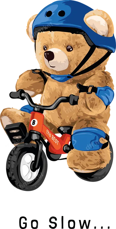 Teddy Bear Balance Bike DTF Transfer | Go Slow Cute Kids Design