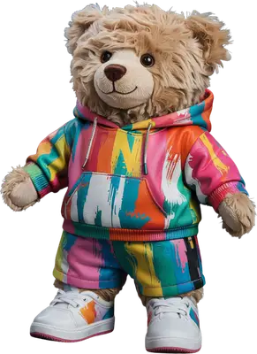 Teddy Bear Streetwear Hoodie DTF Transfer - Colorful Abstract Design
