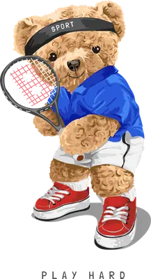 Tennis Teddy Bear DTF Transfer | Play Hard Sports Design