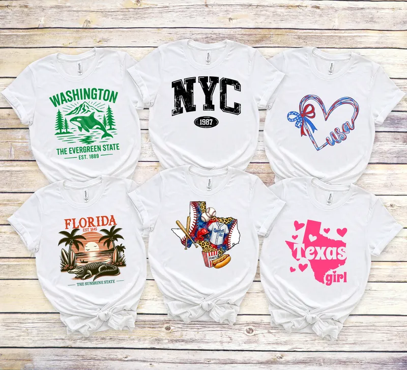 See allShow your Texas pride and love for America's favorite pastime with this dynamic Texas Baseball DTF transfer. Featuring the iconic state outline filled with classic baseball elements like bats, a glove, a jersey with '01', and a delicious hot dog and peanuts, this design perfectly captures the spirit of game day. It's a vibrant, ready to press heat transfer that brings the ballpark atmosphere straight to your apparel. This unique design is ideal for Texas residents, baseball enthusiasts, little league parents, coaches, and sports fans of all ages. Perfect for wearing to games, tailgating parties, local tournaments, or simply celebrating your Texas roots. It makes an excellent gift for birthdays, Father's Day, team events, or any occasion where showing state and sport allegiance is key. Elevate your wardrobe or create custom gifts for friends and family. Our premium DTF transfers are incredibly versatile and easy to apply to almost any fabric type, including cotton, polyester, and various blends. Achieve professional results in minutes using a heat press (recommended temperature 300-325°F for 15 seconds with medium pressure) or even a household iron. Forget complex weeding, layering, or dealing with messy screens; these heat press ready decals simplify your customization process, making DIY projects a breeze. Experience superior quality with our durable direct to film transfers. Each t-shirt transfer boasts brilliant, crack-resistant colors and a soft-hand feel, ensuring your garment looks fantastic and stands up to countless washes. Crafted on professional-grade DTF film with strong adhesive, these apparel transfers offer exceptional longevity and vivid detail, making your custom shirt design truly stand out from the crowd.