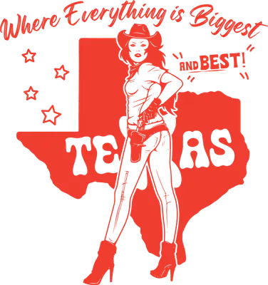 Texas Cowgirl Pin-Up DTF Transfer | Where Everything is Biggest