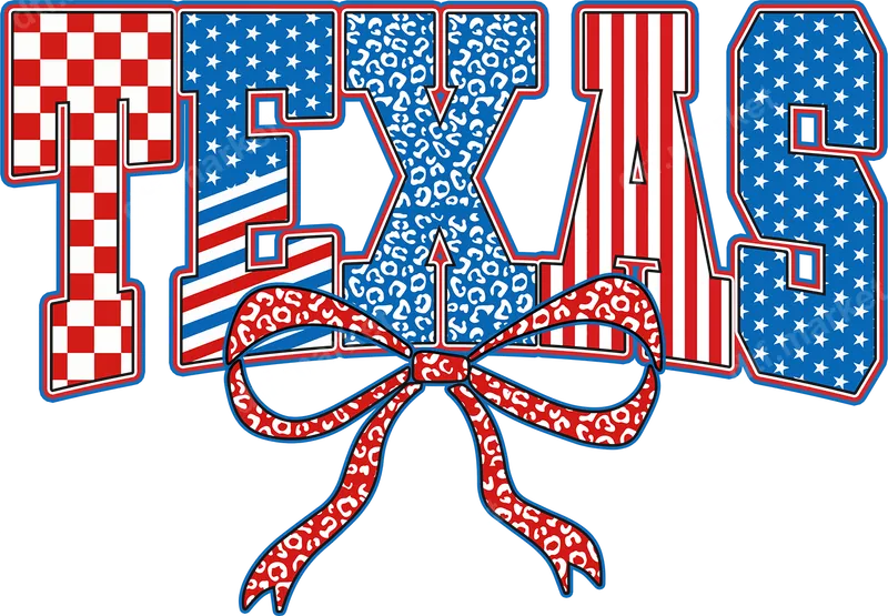 See allThis eye-catching Texas DTF transfer celebrates Lone Star State pride with a unique blend of patriotic and trendy designs. The word "TEXAS" is boldly displayed, featuring sections adorned with classic American flag stars and stripes, a vibrant red and white checkerboard pattern, and a stylish blue leopard print. Completing the look, a charming red leopard print bow sits below, adding a touch of flair. This high-quality direct to film transfer is ready to press onto your favorite apparel, making customization effortless. Perfect for Texans, those who love the state, or anyone looking to express their Southern and American spirit. This versatile heat transfer design is ideal for local events, Fourth of July celebrations, rodeo shows, state fairs, or everyday wear. It makes an excellent gift for friends, family, or fellow Texas enthusiasts, allowing them to personalize shirts, hats, bags, and more with unique style. Our ready to press transfers are designed for easy application across a wide range of fabric types, including cotton, polyester, and various blends. For best results, use a heat press set between 300-325°F for 15 seconds with medium pressure. These heat press designs can also be applied with a household iron, offering flexibility for home crafters. Enjoy the convenience of no weeding or masking required, saving you time and effort. Experience professional-grade results with our premium DTF transfers. Each iron on transfer boasts incredibly vibrant colors that pop, superior stretch and durability, and excellent wash fastness, ensuring your design remains brilliant wash after wash. The finished application is soft to the touch and crack-resistant, made with durable DTF film and strong adhesive for a lasting finish on all your apparel.