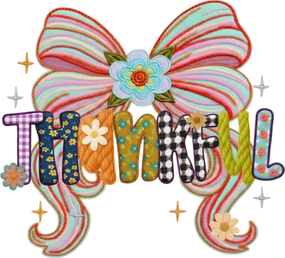 See allEmbrace the spirit of gratitude with this enchanting "Thankful" DTF transfer. Featuring a whimsical, multi-textured design, the word "THANKFUL" is crafted from delightful patchwork patterns, gingham, floral prints, and cozy yarn textures. A vibrant, colorful bow with a central embroidered flower forms the backdrop, creating a truly charming and rustic aesthetic. Adorned with delicate floral accents and sparkling stars, this ready to press design exudes warmth and heartfelt appreciation, perfect for celebrating the harvest season and beyond. This heartwarming design is perfect for individuals looking to express gratitude, whether for Thanksgiving celebrations, fall festivals, or everyday wear. Ideal for moms, grandmas, crafters, and small boutique owners creating custom apparel. Use this iron on transfer to make matching family shirts for holiday gatherings, thoughtful gifts for hosts, or unique merchandise for your seasonal collections. Its versatile charm makes it a wonderful addition to any wardrobe or home decor project, radiating positivity and thankfulness. Applying this heat press transfer is simple and efficient. It adheres beautifully to a wide range of materials including cotton, polyester, cotton-poly blends, and even nylon, making it incredibly versatile for all your crafting needs. Achieve professional results with a heat press at 300-325°F for 15 seconds with medium pressure, or easily apply it with a household iron. There's no tedious weeding required—simply peel and press! Create custom t-shirts, cozy hoodies, stylish tote bags, unique pillow covers, or adorable baby onesies. For lasting durability, wash garments inside out and tumble dry low. Our ready to press transfer ensures exceptional quality with vibrant, full-color printing that captures every intricate detail of the patchwork and embroidered textures. The design is crack-resistant and soft to the touch, offering a superior feel compared to traditional vinyl. Each direct to film transfer is meticulously printed on premium DTF film, featuring a strong adhesive backing to guarantee professional, long-lasting results every single time. Elevate your creations with a transfer that combines durability, beauty, and ease of use.