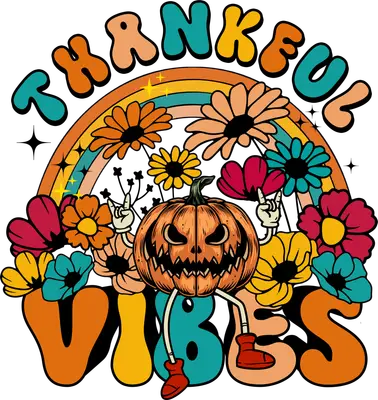 Thankful Vibes Jack-o'-lantern Retro Fall DTF Transfer | Groovy Autumn Design