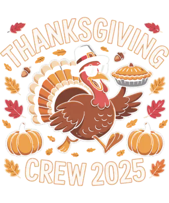 Thanksgiving Crew 2025 DTF Transfer | Funny Turkey Pilgrim Hat Pie