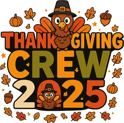See allThis charming 'Thanksgiving Crew 2025' DTF transfer features festive autumn colors and adorable cartoon turkeys in pilgrim hats. The design is artfully arranged with playful pumpkins, acorns, and scattered fall leaves, creating a warm and inviting holiday feel. It's the perfect ready to press transfer to celebrate the upcoming Thanksgiving season with a touch of cuteness and unity for your whole family or group. This delightful iron on transfer is ideal for families planning matching holiday outfits, friends gathering for Friendsgiving, or small businesses creating festive apparel. It’s perfect for capturing memorable moments during Thanksgiving dinner, pumpkin patch visits, or any autumnal celebration. Whether you're making custom shirts for your immediate family, a large extended family reunion, or selling unique holiday merchandise, this heat transfer design adds a personal and cohesive touch. Applying this vibrant heat press transfer is simple and fast. It works flawlessly on a wide range of materials, including cotton, polyester, cotton-poly blends, and even nylon, ensuring versatility for your projects. Achieve professional results using a heat press set at 300-325°F for 15 seconds with medium pressure, or you can use a household iron for smaller applications. There’s no weeding involved – simply peel and press! Create custom t-shirts, cozy hoodies, festive sweatshirts, practical tote bags, or even cute baby onesies and aprons with ease. For best longevity, wash garments inside out and tumble dry low. Our ready to press transfer boasts exceptional quality, showcasing crisp, full-color printing with intricate details. The design is crack-resistant and provides a soft hand feel, avoiding the bulky sensation often associated with traditional vinyl. Each direct to film transfer is meticulously printed on premium DTF film, engineered with a strong adhesive backing for reliable, professional-grade results on every garment. Elevate your apparel with this durable and beautiful design.