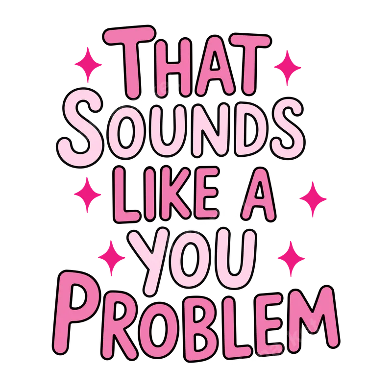 See allThis vibrant DTF transfer features the bold and sassy phrase, "THAT SOUNDS LIKE A YOU PROBLEM," in playful shades of pink with sparkling starburst accents. It's a humorous and direct way to express a confident, no-nonsense attitude. This high-quality direct to film transfer arrives ready to press, allowing you to instantly customize apparel with wit and personality. Perfect for anyone who loves a good laugh and isn't afraid to speak their mind, this heat press design is ideal for gifting to friends, family, or treating yourself. It's fantastic for adding a unique touch to casual outfits, social events, or making a daily statement. Embrace confidence with this hilarious iron on transfer. Our premium DTF transfers are versatile, adhering beautifully to cotton, polyester, and blends. For best results, apply using a heat press at 300-325°F for 15 seconds with medium pressure, then cold peel. A household iron can also be used. Enjoy seamless customization; these ready to press transfers require no weeding, saving time and effort. Experience professional results with our durable heat transfer. Each apparel transfer boasts vibrant colors that pop and resist cracking, ensuring your design looks fresh, wash after wash. The finished graphic offers a super soft hand feel, integrating smoothly with the fabric. Crafted using specialized DTF film and strong adhesive, this shirt design delivers long-lasting quality.