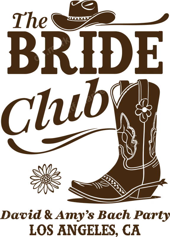 The BRIDE Club Western Bachelorette DTF Transfer | Cowboy Hat & Boot Design