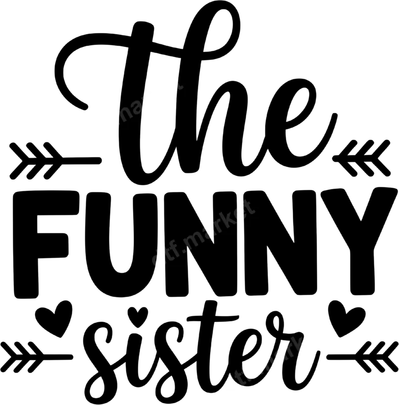 See allShow off that special bond with 'The Funny Sister' DTF transfer! This delightful design features a charming mix of elegant script and bold block fonts for a playful yet stylish look. Adorned with small hearts and decorative arrows, it perfectly captures the loving, light-hearted spirit of sisterhood. This high-quality DTF transfer arrives to you as a ready to press design, making custom apparel creation quick and effortless. This 'Funny Sister' heat transfer is an ideal choice for anyone celebrating their sibling, whether it's for yourself or as a thoughtful gift. Perfect for sisters, best friends, or family members looking to highlight the fun-loving sister in their lives. It's fantastic for birthdays, Christmas, Mother's Day, family reunions, sister trips, or simply to add a touch of humor to everyday wear. Create matching shirts for your whole crew or a unique present for that one-of-a-kind sister. Applying this iron on transfer is incredibly simple. It works beautifully on a wide range of fabrics, including cotton, polyester, and their blends. For best results, use a heat press at 300-325°F for 15 seconds with medium pressure, followed by a cool peel. No specialized skills or weeding required – just press and go! This means you can create professional-looking garments right from your home or workshop. Our direct to film transfers are known for their exceptional quality. Expect vibrant colors that pop, superior durability that resists cracking and fading, and a soft-to-touch finish that feels great on any garment. Each apparel transfer is crafted from professional-grade DTF film with a strong adhesive, ensuring your custom t-shirt transfer lasts wash after wash.