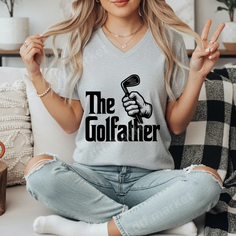 See allStep onto the course with authority and a chuckle with 'The Golfather' DTF transfer. This playful design, featuring bold lettering reminiscent of a classic film poster and a hand firmly gripping a golf club, is a must-have for any golf aficionado with a sense of humor. Our high-quality direct to film transfer arrives ready to press, making it simple to add a personalized touch to your apparel. It's the perfect statement piece for your next round, combining iconic parody with your love for the game. This unique 'The Golfather' heat transfer is ideal for the golf-loving dad, grandpa, uncle, or friend in your life. It makes a fantastic gift for Father's Day, birthdays, Christmas, or any special occasion celebrating their passion for golf. Perfect for casual wear, golf tournaments, or even a fun outing with fellow golfers, this design ensures you'll stand out on the green. Applying your new Golfather iron on transfer is incredibly straightforward. Designed for universal compatibility, it adheres beautifully to a wide range of fabrics including cotton, polyester, and cotton/poly blends. For best results, use a heat press at 300-325°F for 15 seconds with medium, even pressure. This ready to press transfer requires absolutely no weeding, saving you time and effort. Simply peel and press for a professional finish. Experience superior quality with every Golfather shirt design. Our DTF transfers boast vibrant colors and sharp details, ensuring your design looks crisp and professional. Engineered for durability, they are crack-resistant and flexible, maintaining their integrity wash after wash. The finished transfer has a soft, lightweight feel, integrating seamlessly with the fabric for maximum comfort. Invest in a premium apparel transfer that truly lasts.