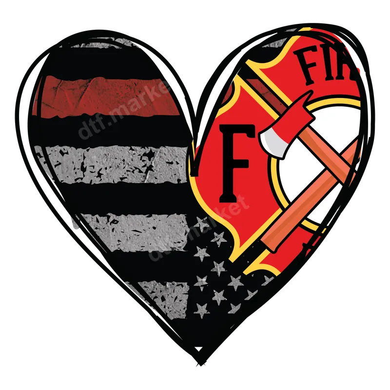 See allThe design depicts a heart split into two powerful symbols of firefighter pride and patriotism. The left side showcases a distressed American flag with the iconic 'Thin Red Line', representing the courage and sacrifice of firefighters. The right side features a classic firefighter shield with crossed axes and the initial 'F'. This vibrant, ready to press DTF transfer is perfect for honoring the brave men and women who serve our communities. This powerful graphic is ideal for firefighters, their families, and proud supporters. It makes an excellent gift for birthdays, Father's Day, holidays, or any occasion to show appreciation for their service. Customize apparel for firehouse events, fundraisers, or simply to express solidarity with these everyday heroes. This versatile heat transfer allows you to create unique garments with ease. Our direct to film transfers are incredibly easy to apply to a wide range of fabrics, including cotton, polyester, and cotton-poly blends. Simply use a heat press at 300-325°F for 15 seconds with medium pressure for a professional finish. For home users, a household iron can also be used, though a heat press ensures optimal durability. Enjoy a no-weeding process, saving you time and effort compared to traditional vinyl transfers. Experience superior quality with our premium DTF film. Each apparel transfer boasts incredibly vibrant colors, exceptional durability, and a soft, flexible feel that resists cracking and peeling, even after multiple washes. Your custom transfer will look sharp and professional, providing a long-lasting tribute to the fire service.