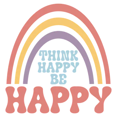 Think Happy Be Happy Retro Rainbow DTF Transfer | Inspirational Quote