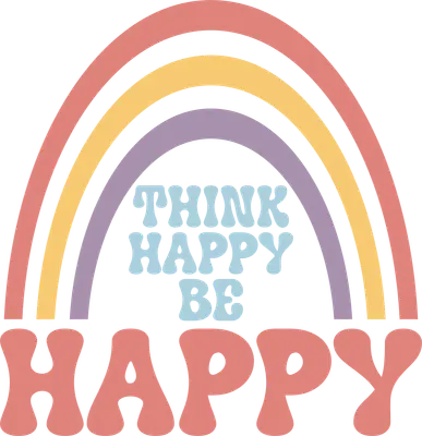 Think Happy Be Happy Retro Rainbow DTF Transfer | Positive Groovy Design