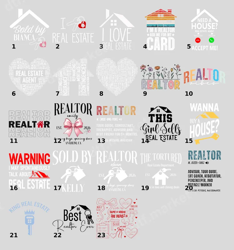 See allIntroducing our empowering "THIS Girl Sells Real Estate" DTF transfer, designed specifically for the driven female professional. This ready to press design features a bold house icon above stylish script "Girl Sells" and strong, all-caps "REAL ESTATE." It's a statement piece capturing the confidence and professionalism of women in the real estate industry. Crafted with precision, this direct to film transfer is prepared to transform ordinary apparel into powerful branding tools. This unique apparel transfer is ideal for female real estate agents, brokers, and realtors looking to boost their brand and show off their profession with pride. It's perfect for wearing to open houses, client meetings, networking events, or as everyday work wear. Consider it a thoughtful gift for a new agent, a valued team member, or to celebrate a successful closing. This design isn't just a graphic; it's a declaration of expertise and dedication. Applying your new heat press design is incredibly simple. This iron on transfer works seamlessly on various fabric types, including cotton, polyester, and blends. For best results, use a heat press set between 300-325°F for 15 seconds with medium pressure, followed by a cold peel. A household iron can also be used. Enjoy the convenience of a ready to press transfer with no tedious weeding required, making customization quick and effortless. We prioritize quality, ensuring every DTF transfer delivers vibrant colors and crisp details that last. Our professional-grade DTF film provides excellent durability, resisting cracking and fading even after multiple washes. The result is a soft-to-the-touch finish that feels like part of the garment. This high-quality heat transfer is built to withstand daily wear, keeping your professional message looking sharp and eye-catching.