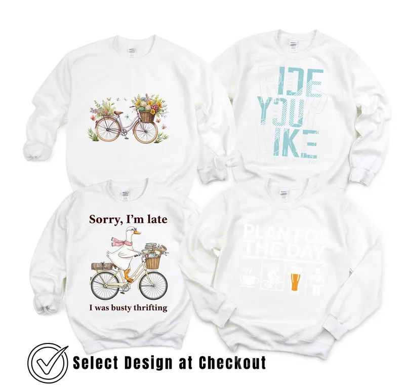 See allThis charming DTF transfer features a whimsical duck on a vintage bicycle, laden with treasures from a successful thrifting adventure. The design playfully states, "Sorry, I'm late I was busy thrifting," capturing a relatable and humorous sentiment. This heat press ready design brings a smile and unique personality to any garment. It's an instant conversation starter for secondhand finds. Ideal for thrifting enthusiasts, vintage lovers, bargain hunters, or anyone with a quirky sense of humor, this design makes a fantastic statement piece. Perfect for casual outings, flea market visits, or just lounging. Surprise a friend or family member with this unique apparel transfer as a birthday gift, a treat for a successful thrift haul, or to celebrate their eco-conscious style. This ready-to-press transfer is sure to be a cherished addition. Applying this design is simple and fuss-free. Our DTF transfers are designed for easy application with either a professional heat press or a household iron. For best results with a heat press, set temperature to 300-325°F, apply for 15 seconds with medium pressure, then cold peel. If using an iron, ensure even, firm pressure. Unlike vinyl transfers, no weeding is required, saving time. Experience superior quality with our direct to film transfer. Each design boasts vibrant, true-to-color prints that remain soft to the touch and incredibly durable. Our premium DTF film ensures excellent washability, preventing cracking, peeling, or fading. The strong adhesive creates a lasting bond with your fabric, ensuring your shirt design looks professional and stands the test of time.