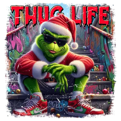 Thug Life Santa Grinch DTF Transfer - Funny Christmas Heat Press Design