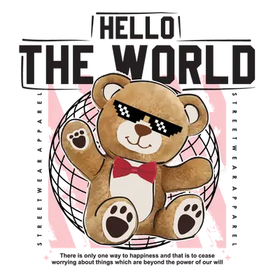 See allUnleash your inner cool with this unique 'Hello The World' teddy bear DTF transfer. Featuring a charming brown teddy bear rocking pixelated "Thug Life" sunglasses and a classic red bowtie, this design perfectly blends cute with edgy streetwear style. The distressed pink and black background, global grid, and bold 'STREETWEAR APPAREL' text frame the playful yet profound quote: 'There is only one way to happiness and that is to cease worrying about things which are beyond the power of our will.' This ready to press transfer is designed to make a statement wherever you go. This hip iron on transfer is perfect for trendsetters, Gen Z, and anyone who loves unique graphic tees and positive messages. It makes an excellent gift for friends, family, or even yourself, adding a touch of humor and wisdom to everyday apparel. Ideal for casual wear, social events, or as a conversation starter, this heat transfer design allows you to express your personality and spread good vibes. Crafters and small businesses will also love this design for creating custom apparel lines that stand out. Applying this heat press transfer is a breeze! It works flawlessly on a variety of fabrics including cotton, polyester, cotton-poly blends, and even nylon. For best results, use a heat press at 300-325°F for 15 seconds with medium pressure. A household iron can also be used with careful application. There's no tedious weeding required—simply peel and press! Create stunning custom t-shirts, hoodies, sweatshirts, tote bags, pillow covers, baby onesies, aprons, and denim jackets. For lasting durability, wash garments inside out and tumble dry on low. Experience superior quality with this ready to press transfer. It boasts vibrant, full-color printing with exceptional fine detail that truly brings the design to life. Unlike traditional vinyl, our DTF transfers are crack-resistant and soft to the touch, ensuring no heavy, stiff feel on your garment. Each direct to film transfer is expertly printed on premium DTF film, featuring a strong adhesive backing for professional-grade results that look fantastic and last through many washes.