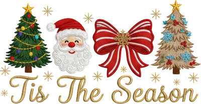 Tis The Season Christmas DTF Transfer | Santa, Trees & Bow Design
