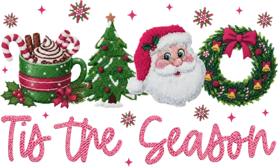 Capture the true magic of the holidays with this charming 'Tis the Season DTF transfer. This festive design showcases a delightful collection of Christmas iconography, including a steaming mug of hot cocoa with candy canes, a twinkling Christmas tree, a rosy-cheeked Santa Claus, and a beautifully decorated holiday wreath. The whimsical, textured art style evokes a cozy, embroidered feel, making it a perfect ready to press design for adding warmth and cheer to any garment or accessory. This iron on transfer is ideal for anyone looking to spread holiday joy. It's perfect for families creating matching Christmas shirts, crafters designing unique holiday gifts, or small apparel businesses stocking up for the festive season. Use this heat transfer design for annual family photos, holiday party outfits, teacher gifts, or simply to create a cozy, personalized item that celebrates the spirit of Christmas. Applying this heat press transfer is simple and efficient. It adheres beautifully to a wide range of materials including cotton, polyester, cotton-poly blends, and even nylon. For best results, use a heat press at 300-325°F for 15 seconds with medium pressure, or apply with a household iron. No tedious weeding or layering required — just peel and press! It's perfect for custom t-shirts, hoodies, sweatshirts, tote bags, pillow covers, baby onesies, and aprons. For lasting durability, wash garments inside out and tumble dry low. Each ready to press transfer ensures vibrant, full-color printing with exceptional detail, bringing your holiday creations to life. The design is crack-resistant and soft to the touch, avoiding the heavy, stiff feel of traditional vinyl. Every direct to film transfer is produced on premium DTF film with a strong, reliable adhesive backing, guaranteeing professional-grade results that will be cherished throughout the holiday season and beyond.