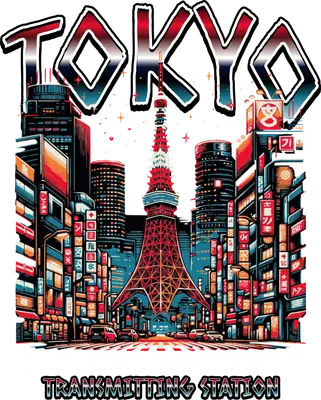 Tokyo Cityscape DTF Transfer | Transmitting Station Neon Art