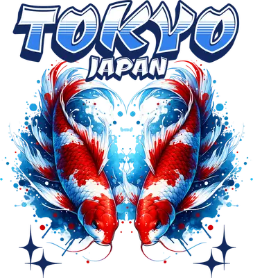 Tokyo Japan Koi Fish DTF Transfer | Vibrant Watercolor Art