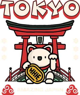 Tokyo Lucky Cat Maneki-Neko Torii Gate DTF Transfer Design