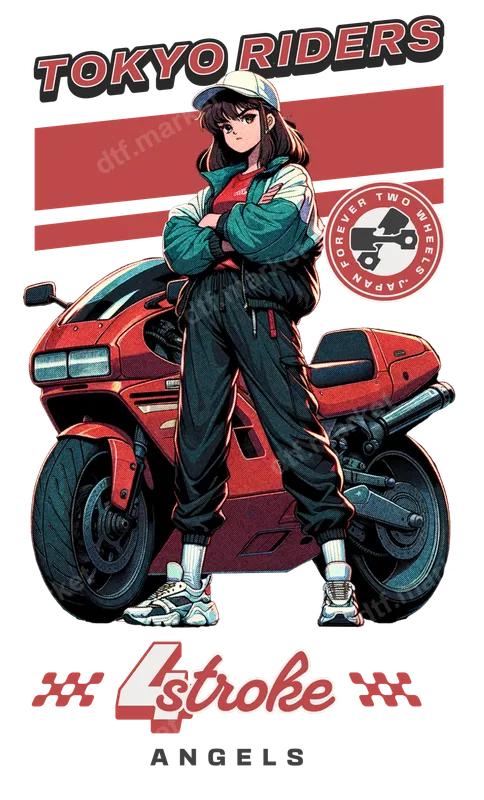 Tokyo Riders Anime Girl Motorcycle 4stroke Angels DTF Transfer
