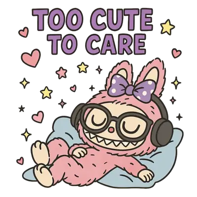 Embrace ultimate chill with this charming 'Too Cute To Care' DTF transfer. Featuring a pastel pink, fluffy monster-bunny creature in stylish glasses, headphones, and a polka-dot bow, this design radiates relaxed vibes. Reclining on a soft blue pillow, surrounded by hearts and stars, this ready to press transfer combines adorable aesthetics with a delightfully sarcastic message. This whimsical iron on transfer is ideal for teens, Gen Z trendsetters, crafters, and small t-shirt businesses. It’s a fantastic gift for friends who appreciate sarcastic humor or anyone enjoying cozy, laid-back aesthetics. Perfect for casual wear, this heat transfer design adds a personalized touch that’s both cute and cool. Boutique owners can easily add this trendy design to their inventory for unique apparel. Applying this vibrant heat press transfer is incredibly simple. It adheres beautifully to cotton, polyester, cotton-poly blends, and even nylon. Achieve professional results using a heat press (300-325°F, 15 seconds, medium pressure) or a household iron. No weeding required – simply peel and press! Perfect for custom t-shirts, hoodies, sweatshirts, tote bags, and baby onesies. For lasting durability, wash garments inside out and tumble dry on low. Experience superior quality with this ready to press transfer, showcasing vibrant, full-color printing with exceptional fine detail. The design is crack-resistant and soft to the touch, avoiding the stiff, heavy feel of traditional vinyl. Each direct to film transfer is meticulously printed on premium DTF film, featuring a strong adhesive backing for professional, long-lasting results. Elevate your apparel with a transfer that combines durability, comfort, and eye-catching appeal.