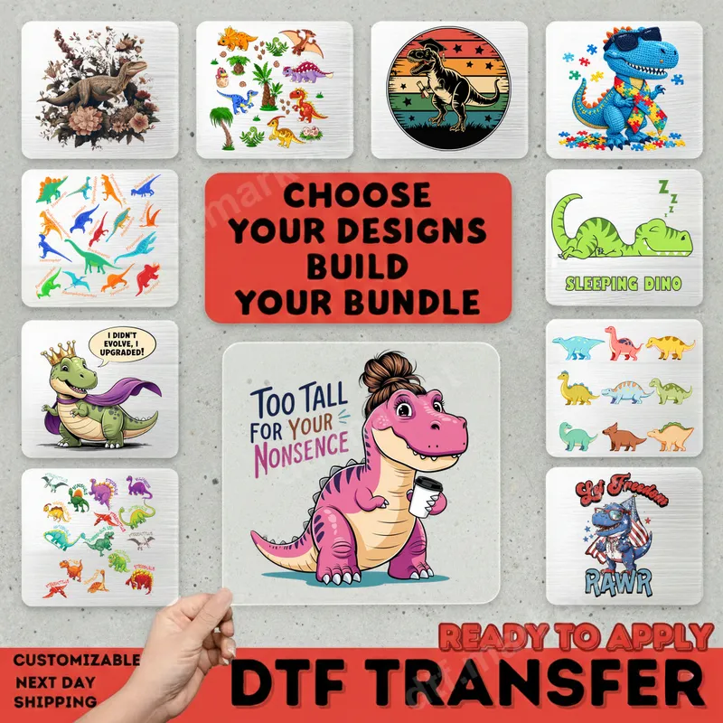 See allExpress your no-nonsense attitude with this vibrant DTF transfer featuring a sassy pink T-Rex. Sporting a stylish messy bun and clutching a coffee cup, this dinosaur is perfectly paired with the bold declaration, 'Too Tall For Your Nonsense.' This fun and spirited design is a ready to press transfer, perfect for adding a touch of humor and personality to your wardrobe. This unique heat transfer is ideal for anyone who’s tired of trivialities and loves a good laugh. It makes a fantastic gift for busy moms, teachers, strong women, or friends with a playful, assertive personality. Perfect for casual wear, coffee runs, or as a thoughtful present for birthdays, Mother's Day, or simply to celebrate a fierce independent spirit. Our premium heat press design is incredibly easy to apply, whether you’re using a professional heat press or a household iron. It adheres beautifully to a wide range of materials, including cotton, polyester, and their blends. Forget about tedious weeding; this iron on decal comes ready to apply, ensuring a quick and flawless finish every time. For best results, press at 300-325°F for 15 seconds with medium pressure. You'll love the exceptional quality of our apparel transfer. Each image is printed with vibrant, long-lasting colors that resist cracking and peeling, even after multiple washes. The direct to film transfer technology ensures a soft, smooth feel on your garment, unlike bulky vinyl. Experience professional-grade results with this durable and high-quality t-shirt transfer, designed to make your custom apparel stand out.