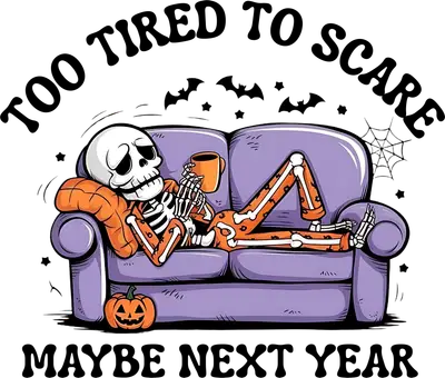 Too Tired to Scare Skeleton DTF Transfer | Funny Halloween Iron On