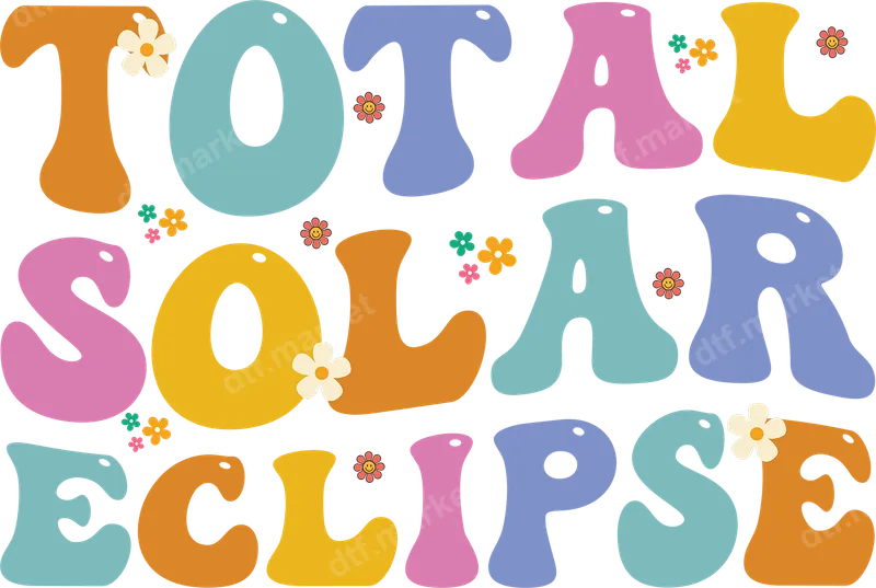 See allCapture the cosmic wonder and nostalgic charm with our 'Total Solar Eclipse' DTF transfer. This vibrant, ready to press design features playful, groovy bubble letters in a delightful palette of orange, light blue, pink, lavender, and yellow. Adorned with cheerful daisy-like flowers, some sporting tiny smiley faces, this direct to film transfer perfectly blends celestial awe with a heartwarming 70s-inspired aesthetic, making it an instant eye-catcher for any event. This unique heat press design is ideal for anyone looking to celebrate the rare celestial event in style. Perfect for solar eclipse viewing parties, educational events, or as a fun, retro fashion statement. It makes a fantastic gift for astronomy enthusiasts, vintage lovers, or anyone who appreciates a touch of whimsical nostalgia. Easily create matching apparel for friends and family to commemorate this unforgettable moment. Our high-quality heat transfer works seamlessly on a wide range of fabric types, including cotton, polyester, and various blends. For best results, apply with a heat press at 300-325°F for 15 seconds with medium pressure, followed by a cool peel. You can also achieve great results with a household iron, making customization accessible for everyone. Enjoy hassle-free application with no weeding required, saving you time and effort. Experience professional-grade results with our premium apparel transfer. The vibrant colors are designed to stay true, resisting cracks and fading even after multiple washes. Crafted on durable DTF film with a strong adhesive, this iron on transfer offers a soft hand feel that seamlessly integrates with your garment. Elevate your wardrobe with a durable, high-quality shirt design that looks and feels fantastic.