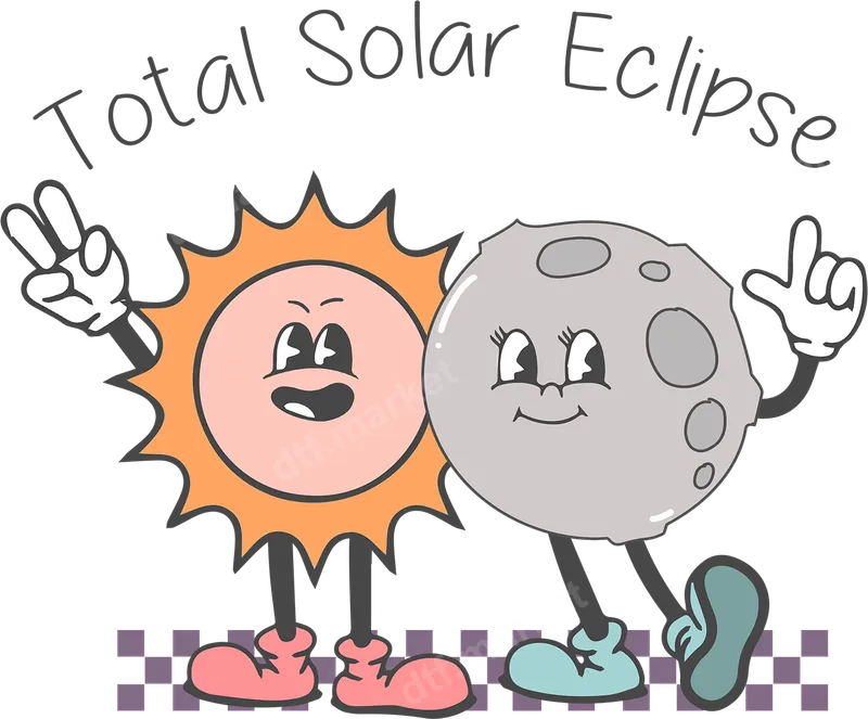 Total Solar Eclipse Retro Sun Moon Cartoon DTF Transfer