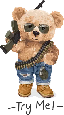 Tough Teddy Bear 'Try Me!' DTF Transfer - Funny Military Animal Design