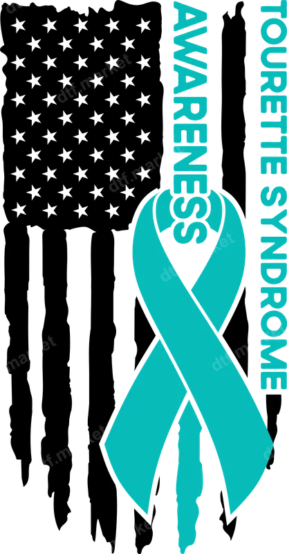 Tourette Syndrome Awareness DTF Transfer | Distressed Flag Teal Ribbon