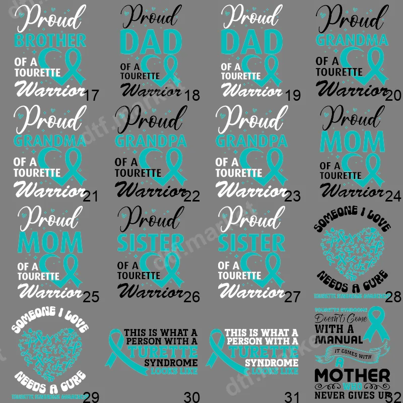 Tourette Syndrome Awareness Family Support DTF Transfer Designs
