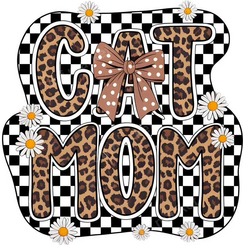 Trendy Leopard CAT MOM DTF Transfer with Daisies & Checkerboard