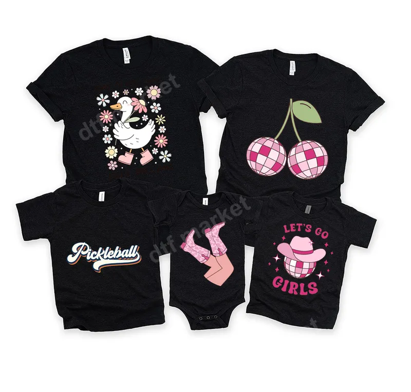 See allThis vibrant 'Let's Go Girls' DTF transfer features a playful pink cowboy hat atop a shimmering disco ball, surrounded by sparkling accents and the iconic phrase in a fun, retro font. It's the perfect ready to press design to add a dash of country glam and party spirit to any garment. This eye-catching heat press transfer captures a celebratory and outgoing vibe, ready to make a statement. This custom transfer is designed for anyone ready to have a good time! It's ideal for bachelorette parties, girls' trips, country music festivals, concerts, or just a fun night out with friends. Perfect for gifting to your besties, bridesmaids, or anyone who loves a blend of western chic and disco sparkle. Celebrate birthdays, graduations, or just everyday good vibes with this unique apparel transfer. Applying this high-quality direct to film transfer is simple and efficient, suitable for a wide range of fabric types including cotton, polyester, and blends. For best results, use a heat press at 300-325°F for 15 seconds with medium pressure. It can also be applied with a household iron with firm, even pressure. Unlike vinyl transfers, there's absolutely no weeding required, making your crafting process smooth and enjoyable. Our DTF transfers boast exceptional quality, ensuring your designs are vibrant, crisp, and long-lasting. The print is crack-resistant and incredibly soft to the touch, seamlessly integrating with your garment. We use professional-grade DTF film and inks with a strong, reliable adhesive, guaranteeing a durable finish that stands up to washing and wear. Enjoy a premium t-shirt transfer that looks and feels great.