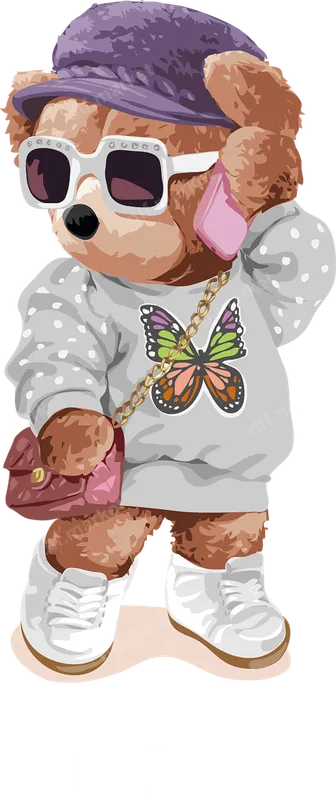 See allUnleash your inner fashionista with this adorable yet super chic DTF transfer featuring a cool teddy bear. This ready to press design showcases a stylish bear rocking a trendy purple cap, white studded sunglasses, a polka-dot top with a vibrant butterfly pendant, a matching pink shoulder bag, and fresh white sneakers. It's a playful design with an urban edge, perfect for anyone who loves unique apparel. This fashionable heat press transfer is ideal for streetwear enthusiasts, trendy teens, and anyone who appreciates a blend of cute and cool. It makes an excellent personalized gift for birthdays, back-to-school, or just because. Imagine this eye-catching iron on decal on a denim jacket, backpack, or even a statement hoodie. It's designed for those who want to stand out and showcase their playful style. Applying this apparel transfer is a breeze, whether you're a seasoned pro or new to custom designs. Our versatile heat press transfer works flawlessly on cotton, polyester, and most fabric blends. For best results, use a heat press at 300-325°F for 15 seconds with medium pressure, then cold peel. A household iron can also be used with careful application. Best of all, there's no complicated weeding required, making customization quick and easy. Expect superior quality with every print. Our DTF transfers are known for their vibrant colors that truly pop, exceptional durability, and crack-resistant finish. The soft-touch feel ensures maximum comfort on your garments. Each design is printed on professional-grade DTF film with a strong, flexible adhesive, ensuring your custom transfer lasts wash after wash without fading or peeling. Create professional-looking items effortlessly.