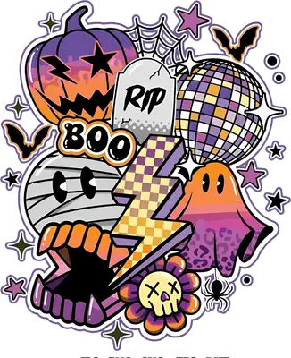 See allThis vibrant Y2K Halloween collage DTF transfer brings a playful yet spooky vibe to any garment. Featuring an energetic mix of classic Halloween elements with a modern twist, you'll find a star-eyed jack-o'-lantern, a groovy disco ball, a friendly mummy, and a checkered lightning bolt, all framed by bats, spiders, and the word "BOO." The design's bold outlines, gradient colors, and unique skull-flower detail make it an eye-catching piece. This direct to film transfer is ready to press, ensuring a quick and easy application for professional results. This unique design is perfect for Halloween enthusiasts, Y2K fashion lovers, and anyone looking to add a trendy touch to their spooky season wardrobe. It’s ideal for teens, young adults, crafters, and small boutique owners creating custom apparel. Whether you're making shirts for a Halloween party, a haunted house event, or simply want to showcase your unique style, this iron on transfer is an excellent choice. It also makes a fantastic heat transfer design for gifts or limited edition merchandise. Applying this high-quality heat press transfer is incredibly simple. It works flawlessly on a wide range of fabrics including cotton, polyester, cotton-poly blends, and even nylon. Achieve a perfect application with a heat press set at 300-325°F for 15 seconds with medium pressure, or use a household iron for smaller projects. There’s no tedious weeding required—just peel and press! It's perfect for custom t-shirts, hoodies, sweatshirts, tote bags, pillow covers, and denim jackets. For lasting durability, wash garments inside out and tumble dry low. Our ready to press transfer delivers exceptional quality, boasting vibrant, full-color printing with incredibly fine detail that truly pops. The print is crack-resistant and soft to the touch, avoiding the heavy, stiff feel of traditional vinyl. Each direct to film transfer is meticulously printed on premium DTF film, complete with a strong adhesive backing to ensure a smooth, professional finish that stands the test of time on all your apparel projects.